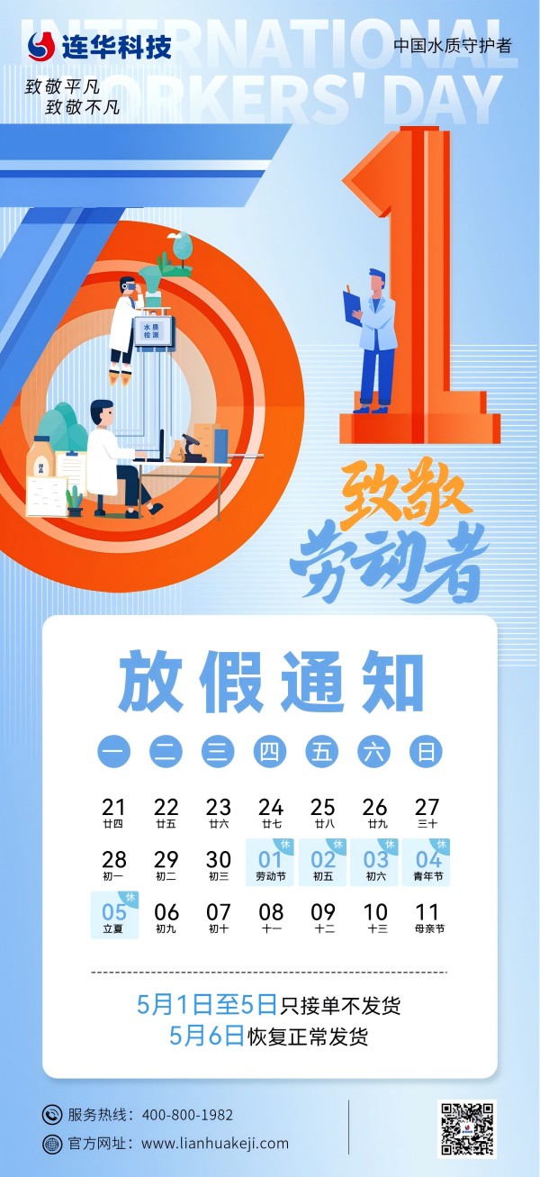 您好!在這繁花似錦、綠草如茵的美好時節(jié),我們即將迎來一年一度的國際勞動節(jié)。在此,連華科技全體員工向您致以最誠摯的節(jié)日問候,衷心祝愿您和您的家人勞動節(jié)快樂,假期愉快!