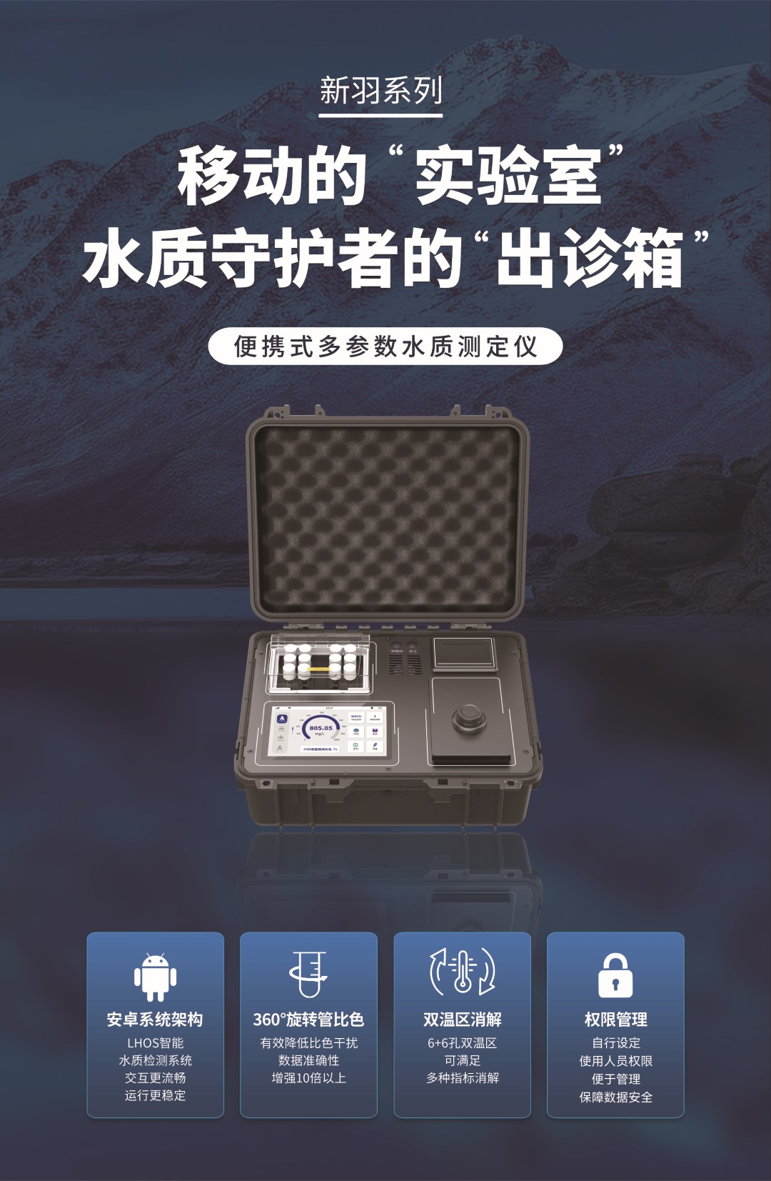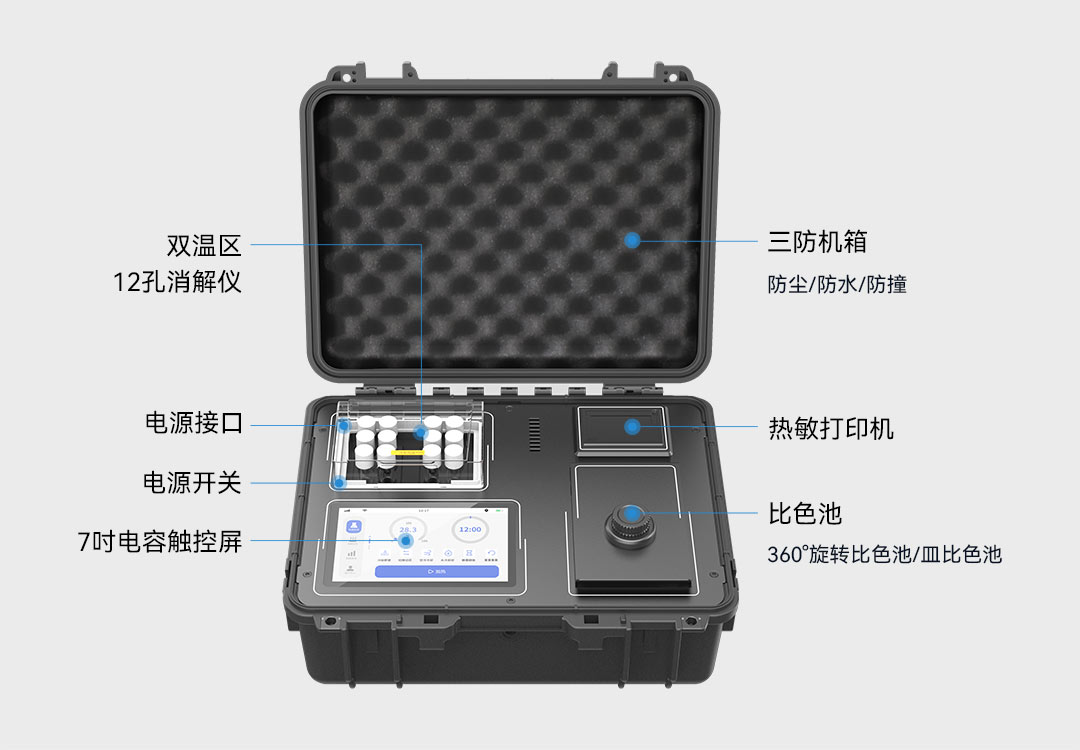 雙便攜箱設(shè)計,為戶外水質(zhì)檢測提供了強大的戶外應(yīng)用支持,該儀器具備雙溫區(qū)消解功能,6+6孔雙溫區(qū)設(shè)計,可以滿足多指標消解的需求。此外,儀器還內(nèi)置了大容量鋰電池,綜合工況下工作續(xù)航能力長達8小時,為戶外長時間使用提供了強有力的支持。