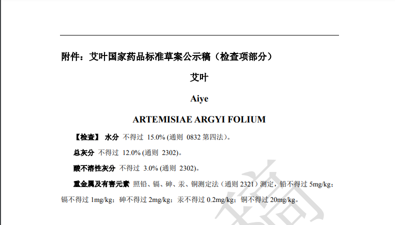 隨著《中藥法典》標準修訂進程的推進,藥典委官網(wǎng)近期陸續(xù)發(fā)布多個標準公示,均與中藥重金屬及有害元素控制相關。其中,“關于黃連國家藥品標準草案的公示”、“關于艾葉國家藥品標準草案的公示”、“關于川芎國家藥品標準草案的公示”,對相關檢測項擬進行修訂。公示期為30天。通知表示,若有異議,可及時在線反饋,并附相關說明、實驗數(shù)據(jù)和聯(lián)系方式。
