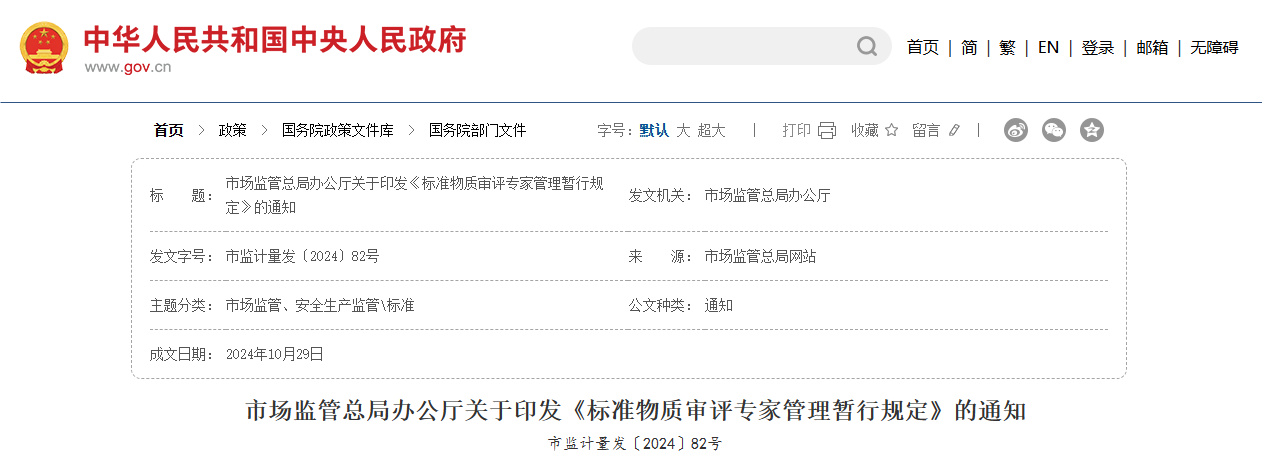 《暫行規(guī)定》明確標準物質(zhì)審評專家的管理部門。市場監(jiān)管總局負責建立國家標準物質(zhì)技術審評專家?guī)旌蛯徳u專家的監(jiān)督管理,省級市場監(jiān)管部門優(yōu)先選派和使用專家?guī)熘械膶徳u專家參與受權的標準物質(zhì)技術審評。
