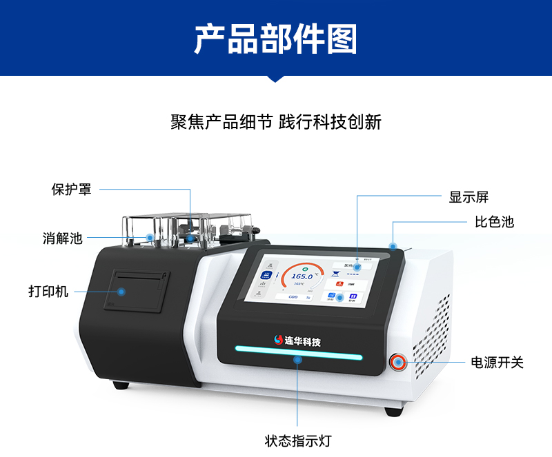除了以上這些亮點,LH-C500的檢測項目還完全符合國家行業(yè)標準,如COD-《HJ/T399-2007》、氨氮-《HJ535-2009》、總磷-《GB11893-89》等,讓用戶在檢測過程中更加放心、安心。同時,產(chǎn)品配套齊全,包括各種液體耗材、密封反應管、冷卻架、管比色架、比色皿座、移液槍、定量器、一機打印紙等,讓用戶在使用過程中更加省心、便捷。