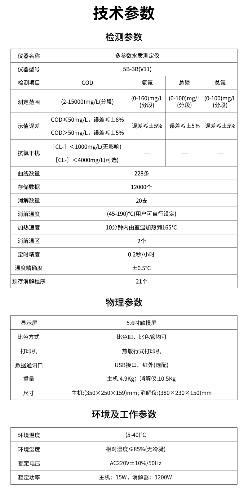 1、五十余項參數(shù)指標:直接測定化學需氧量(COD)、氨氮、總磷、總氮、懸浮物、色度(鉑鈷色系)、濁度、重金屬、有機污染物和無機污染物等多項指標,濃度直讀;