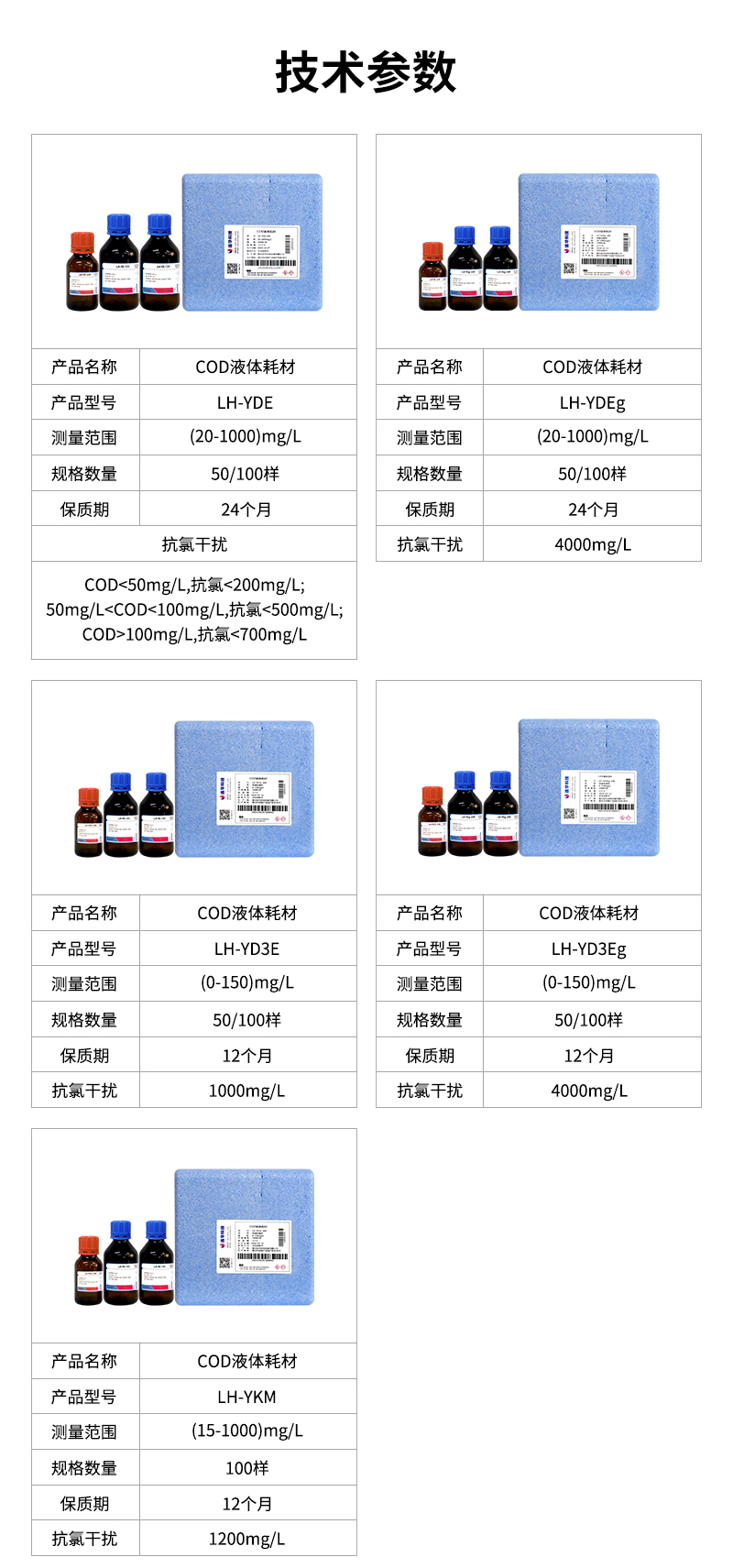 抗氯干擾:COD<50mg/L,抗氯<200mg/L;50mg/L<COD<100mg/L,抗氯<500mg/L;COD>100mg/L,抗氯<700mg/L